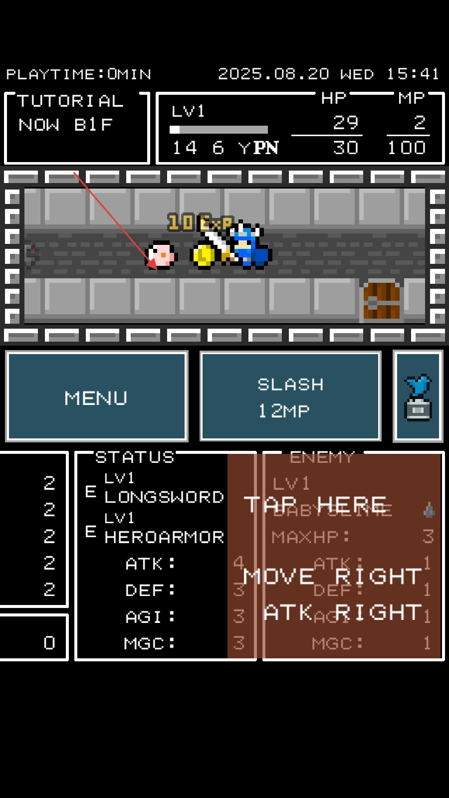 操作简单易上手:触摸屏幕左右区域就能控制勇者移动,进入地下城后点击前进方向就能攻击怪物,让你能专注于冒险本身。