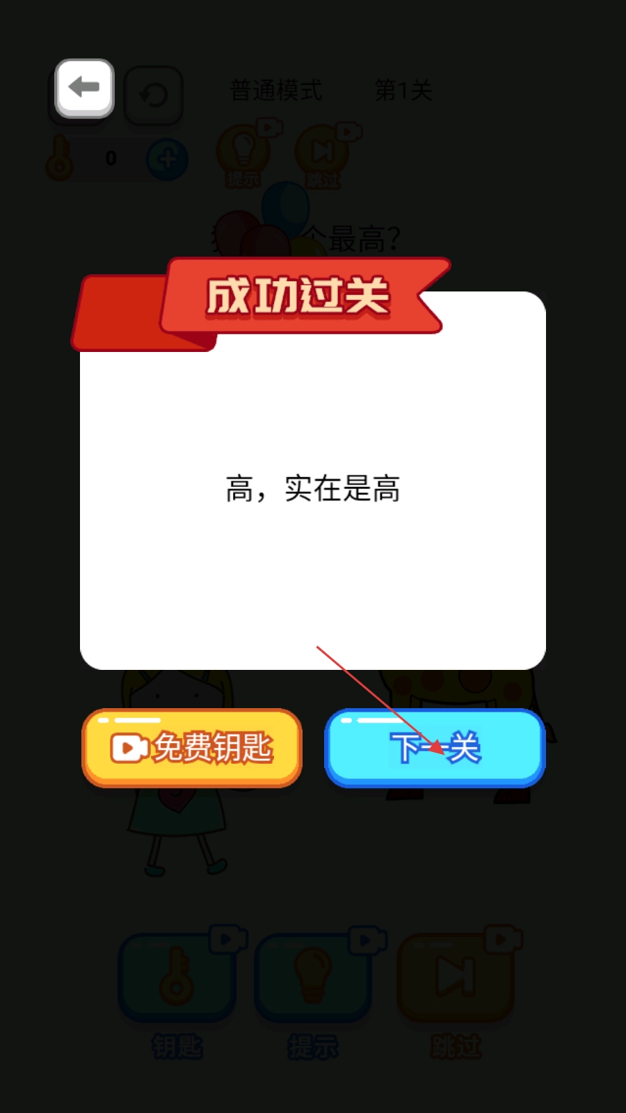4、成功过关后,点击【下一关】,继续后续挑战。
