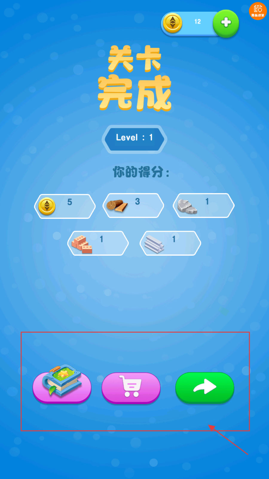4、通关后点绿色箭头按钮,进入下一关,继续消消乐。