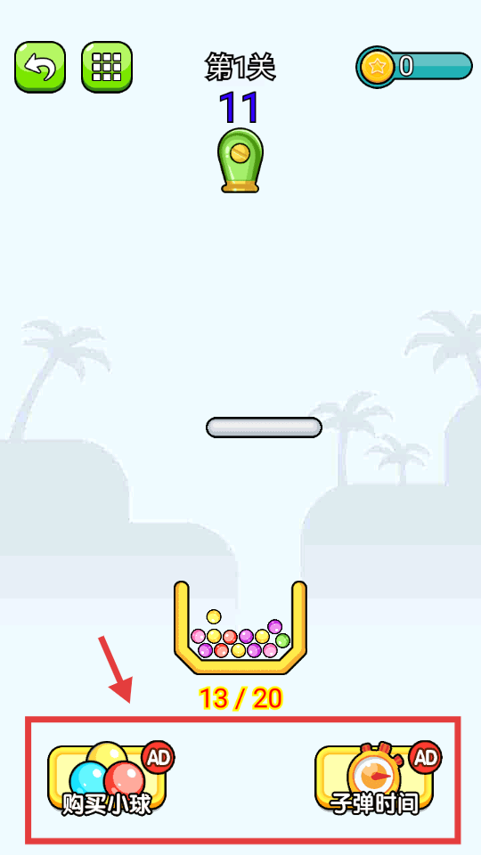 2、点击屏幕,抓准时机释放小球。