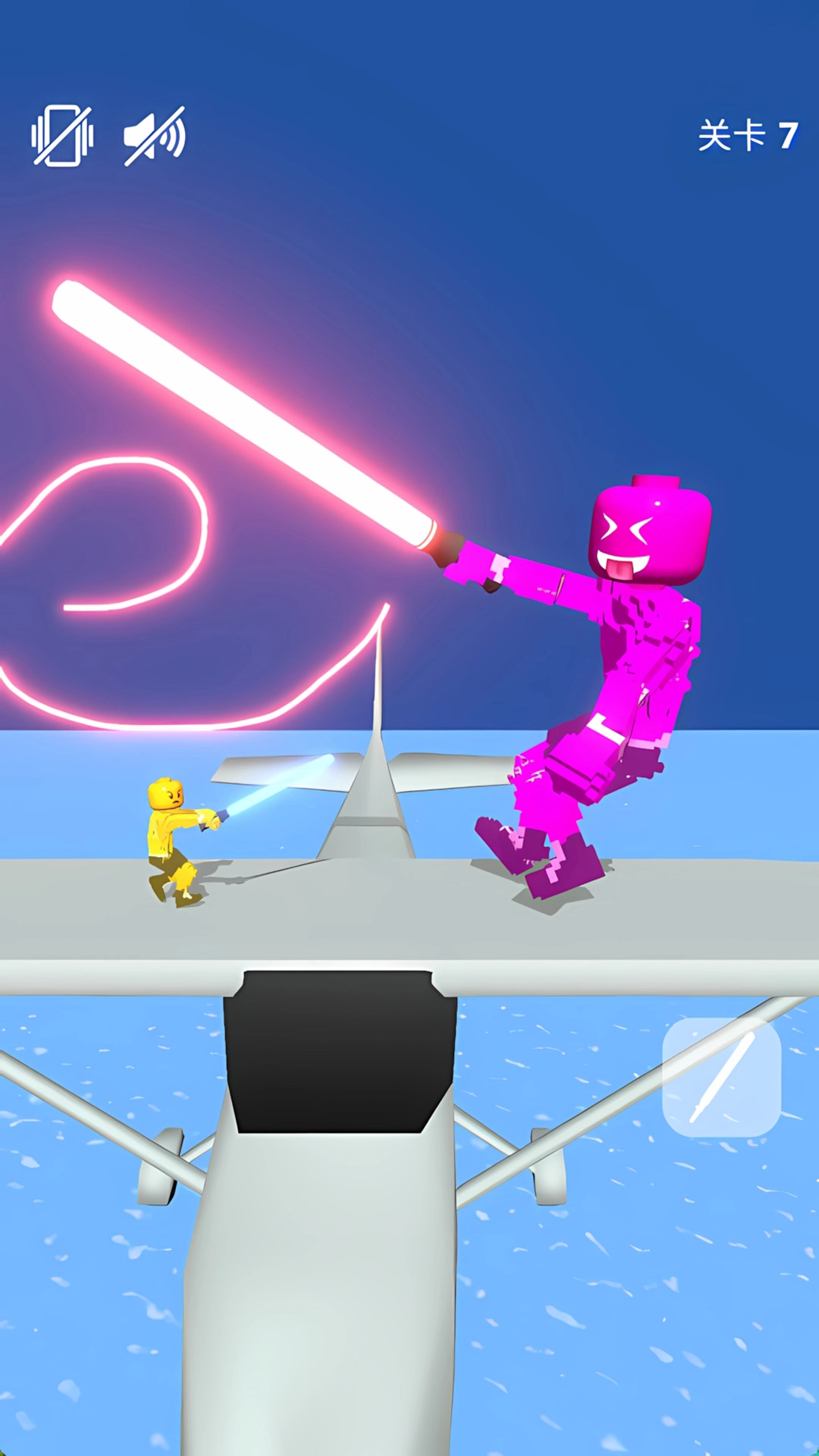 按顺序挑战各个关卡,在地面、飞机顶部等不同场景中,与各种怪物组合展开对抗,成功通关后可解锁全新的光剑皮肤和技能。