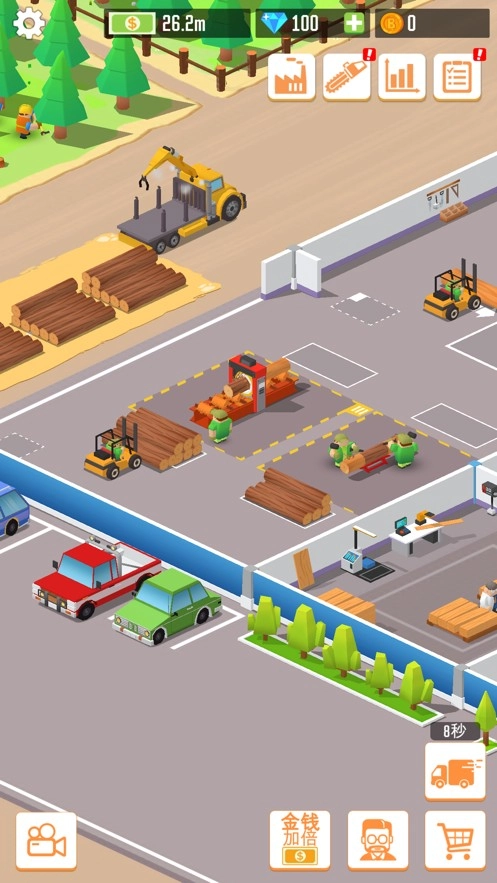 《我要当老板伐木工厂》是一款极具休闲感的放置经营类游戏。在游戏里,你将化身木材大亨,学习如何经营专属伐木场——合理采购资源、搭建设备是关键。游戏初期,你仅拥有一处小型木材堆放场地,需要招募员工、添置更多设备;雇佣能力出众的优秀员工为你效力,一步步把伐木场打造成富甲一方的产业吧!
