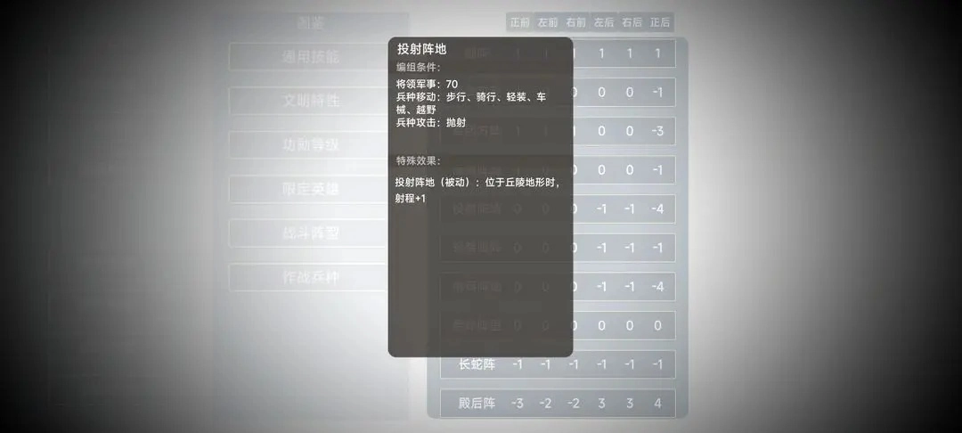 地形与兵种的关联机制:各类基础地形会对队伍产生不同效果,既可能带来增益也可能施加减益。例如丘陵地形有利于远程输出单位发挥;海洋或湖泊区域可供水军部队部署;森林地形能提升队伍防御能力,但处于己方前方的森林会遮挡直射型远程兵种的视野;河流地形会使部队额外消耗行动力;此外丘陵与森林地形对特定兵种也会造成行动力的额外损耗。需要特别注意的是,这些地形带来的加成效果对敌方部队同样适用,具体的数值细节可以在游戏过程中自行探索发现。