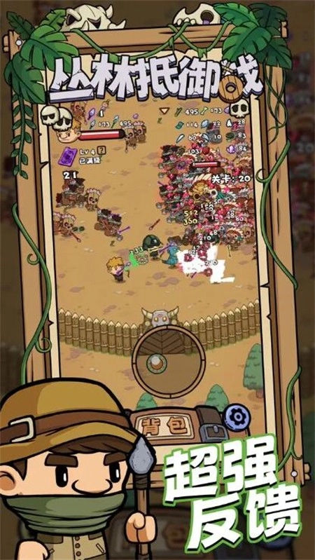 《丛林抵御战》是一款画风独特的冒险闯关游戏,多样伙伴角色与武器类型。每个伙伴都具备专属属性和技能,玩家可根据需求为其搭配合适装备。随着关卡深入,敌人实力会不断提升,对玩家的战力储备和走位技巧都是不小的挑战,灵活精准的移动操作往往能改变战斗局势,感兴趣的玩家不妨来体验一番!