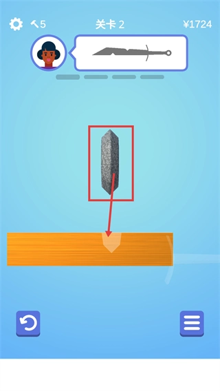 进入关卡2,需参照上方剑的样式,使用砂轮对木材的对应部位进行初步打磨,从而开启塑形环节。
