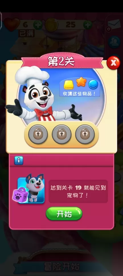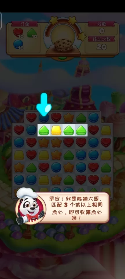 收集特定数量的甜点:比如需要消除20个蓝色马卡龙和15个红色蛋糕。