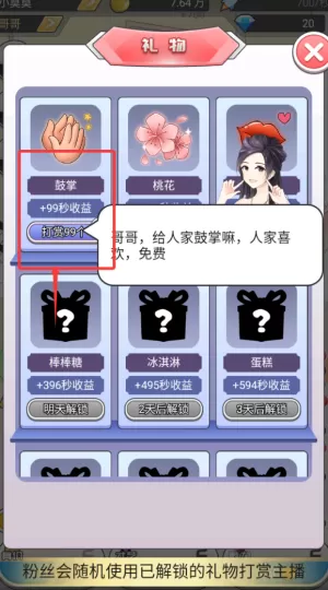 3、虚拟货币系统支持观众视角的互动玩法,不同礼物对应特定加成效果,如提升直播间热度或增加主播信心值。