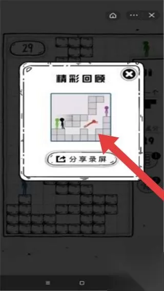 3、这是某手绘风格游戏的“精彩回顾”界面,实体信息有“精彩回顾”标题、“分享录屏”按钮,以及展示过程片段的缩略图。