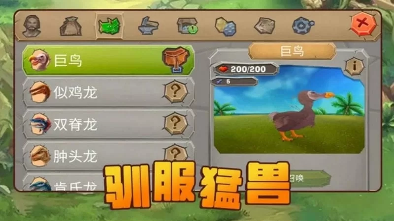 2、恐龙驯养技巧:根据需求选择驯养目标,如迅猛龙适合侦查与快速运输,霸王龙适合正面战斗,三角龙适合采集资源,,通过训练提升特定技能。