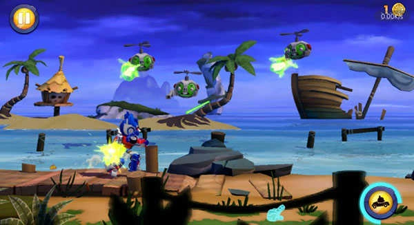 操控变形金刚鸟进行跑酷射击,消灭藏在障碍物里的机械猪。