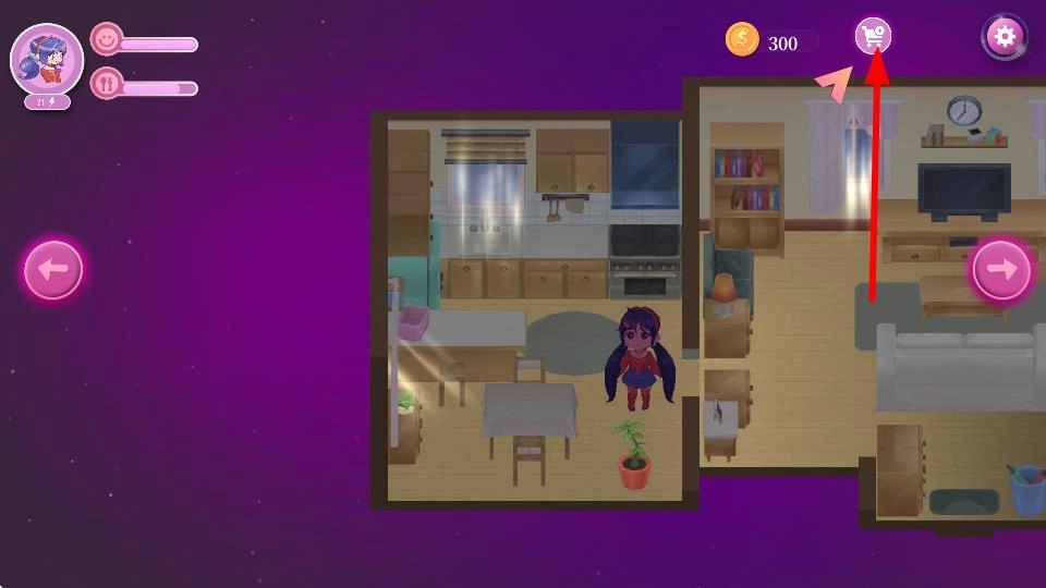 点击右上角的购物车图标,就能进入商店界面,用金币购买装饰或者清洁用品,从而提高清洁效率。