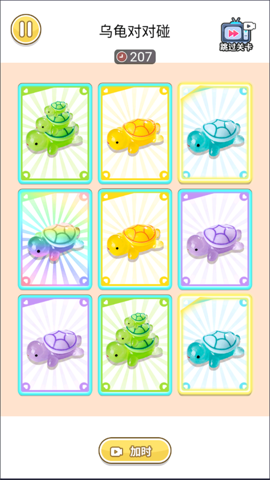:玩家需要通过翻阅卡片找到匹配的乌龟图案,使用各种可爱和愚蠢的乌龟图像作为消除元素。放松游戏体验