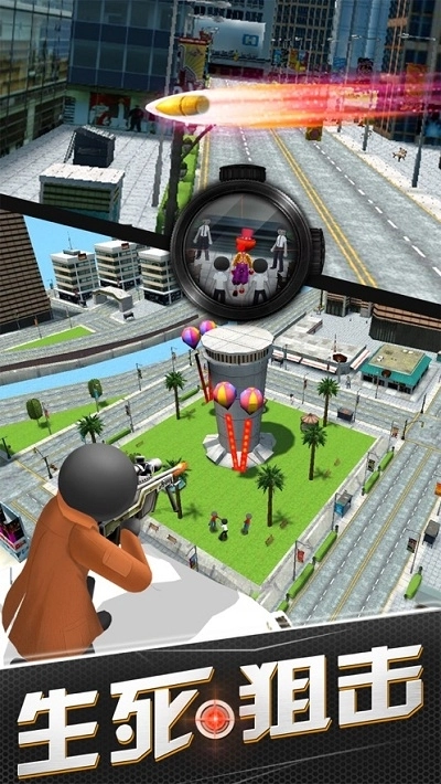这里的玩法轻松简单,玩家只需单手滑动手机就能放大狙击范围,瞄准目标后一枪即可将其击毙。