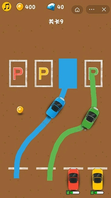 在涂鸦停车里,每次完成路线规划后,你都能点击开始按钮,让汽车启动,借此检验自己是否能在脑海中达成目标。
