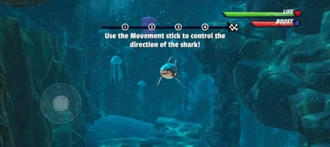 不过,要是鲨鱼长时间都找不到食物,右上角的生命条就会慢慢减少,直到变成零,游戏也就结束了。因此,生存的挑战每时每刻都在考验着您。