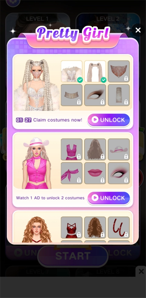在本站安装尤雅美妆改造乐园游戏,打开进入游戏界面后,玩家能看到大量关卡,点击START即可开启挑战。