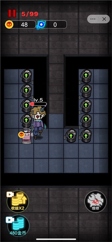 简约的画风配上诡异的音效,瞬间就把氛围感拉满了。游戏有好几种模式,玩起来都特别带感——既能选择躺平模式,慢慢攒金币建造防御工事,抵御猛鬼的一波波进攻;也能切换身份,化身猛鬼主动出击,体验强势压制的快感。而且操作特别简单,新手也能快速上手,但策略性又很强,玩起来烧脑又有趣,不管什么时候、什么地方,想玩就能随时开一局。