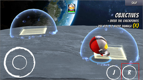 玩家点击“R”按钮可控制奥特曼翻滚至黄色区域;
