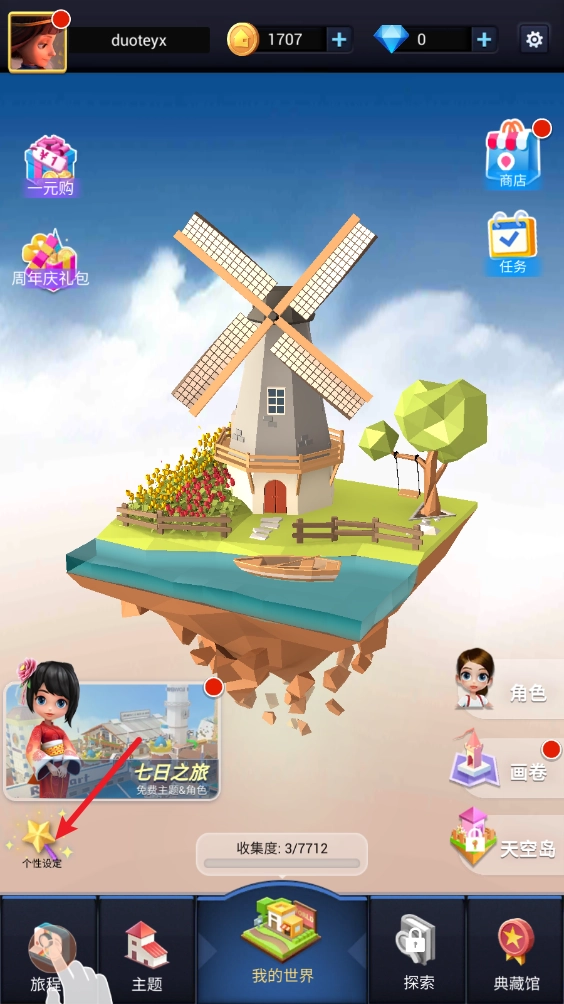 主界面中选择左下角的个性设定。