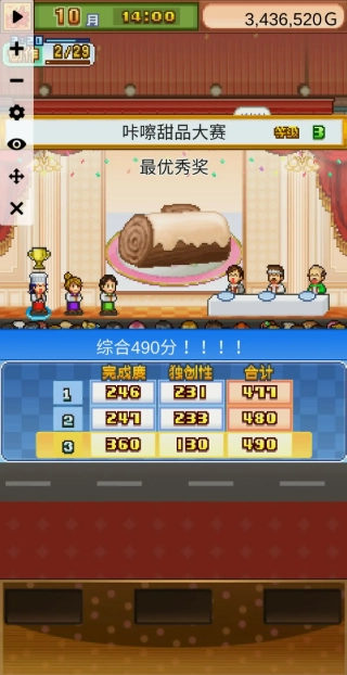 吃货甜品大会(满分完成度480)依旧是纯拼三围数值,但对食材分量的要求更严格了。之前城镇大赛用的配方可能不太够用,不过额外加一份高分量的食材进去,应该也能应付得差不多。