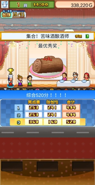 西城蛋糕会(满完成度为480)同样仅比拼三围数值,不过对美味度的要求更高,使用城镇大赛的配方就能满足条件。