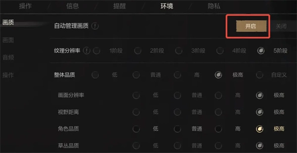 要是仍然有卡顿的现象,不妨选择开启【自动管理画质】功能。
