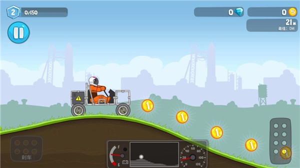 等你有了自己的车子,就可以开启比赛之旅啦。要记清楚,最左边的按键是刹车,右边那个则是油门。要是看到车头抬起来了,得赶紧踩刹车;要是车尾翘起来,那就踩油门加速。另外,一定要在汽油用完之前冲到终点哦。