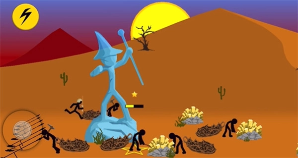 玩家能够操控或指挥火柴人发起进攻、开采金矿以获取经济资源,还可以训练各式各样的火柴人单位。派遣不同类型的火柴人进攻敌方雕像,当任意一方的雕像被摧毁时,另一方即宣告胜利。此外还有生存模式,在该模式下玩家所在区域会出现大批僵尸,需要在每个夜晚抵御僵尸的持续袭击,要么坚持到天亮,要么在战斗中阵亡。