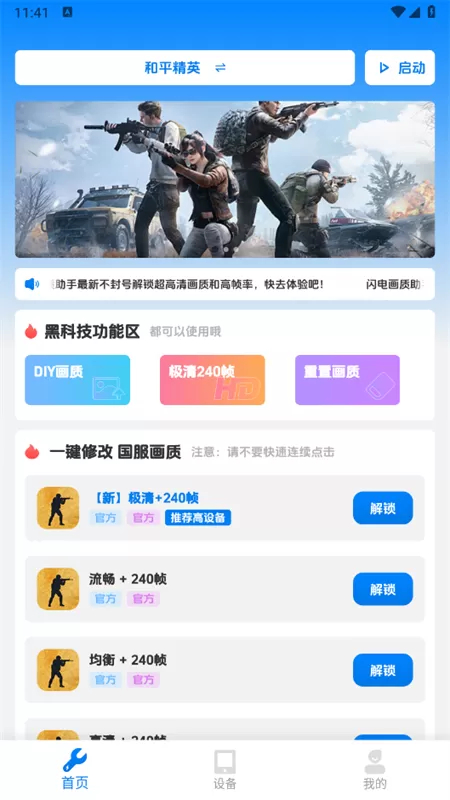 1、即刻开启游戏画质工具解锁,借助高帧率开启游戏辅助操作。