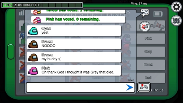 当所有伪装者都被放逐,或者船员的人数变得少于等于伪装者时,这场游戏便宣告结束。