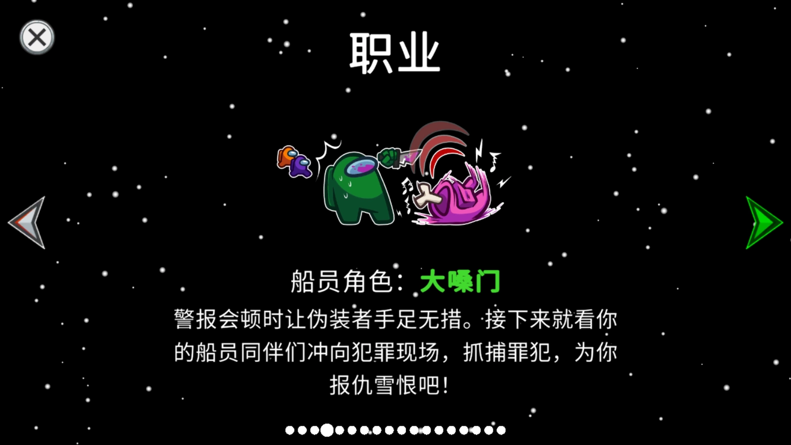 大嗓门并非船员中的常规角色。和其他角色不一样,它没有能主动施展的技能。但这个角色要是被伪装者杀害,就会自动触发警报。警报会立刻让伪装者慌了手脚。之后就靠你的船员同伴们赶到案发地点,抓住凶手,替你报仇了!