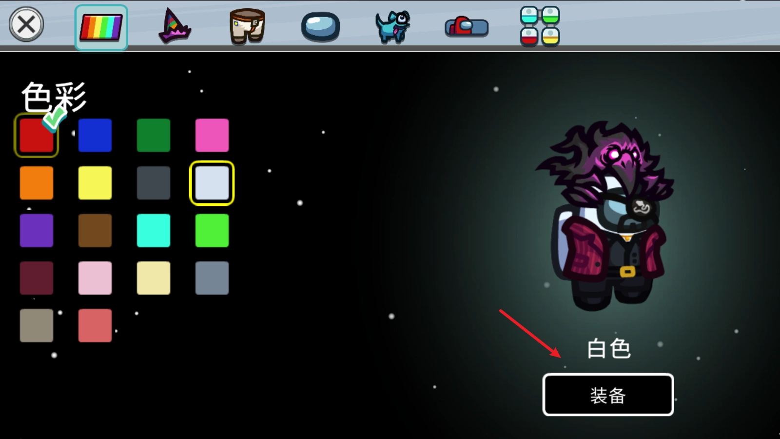 购买完成后回到仓库,通过选择上方的栏目来调整各个部位的皮肤。