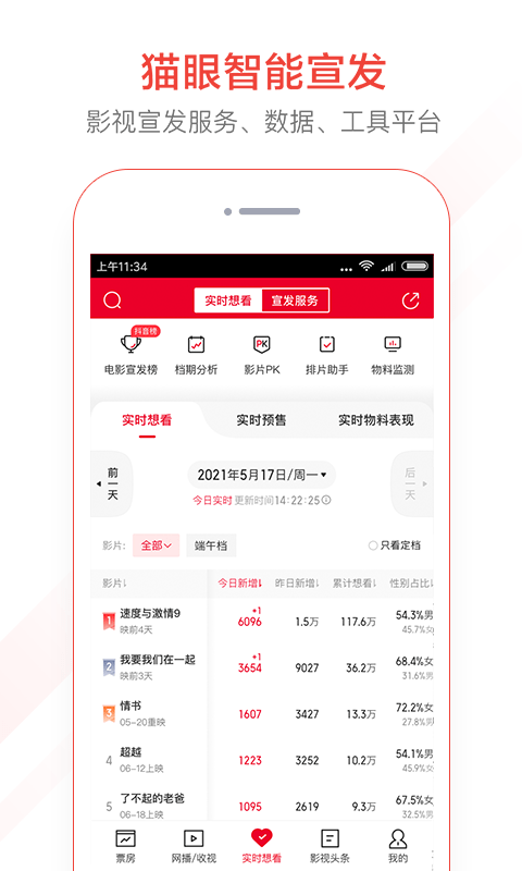 排片与考勤管理:国内领先的排片查询系统,支持提前30天查询热门影片排期,可实时查看排片场次数量及占比、上座率与平均上座率数据。