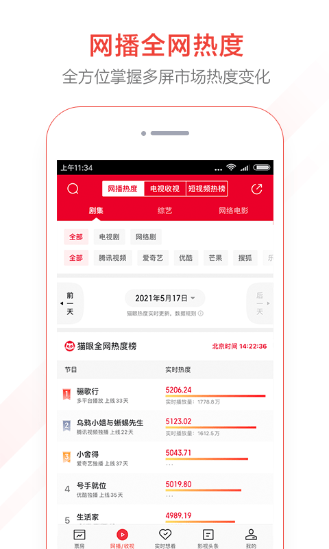 实时电视收视:可实时查看关注情况、实时市场占有率等相关收视数据;