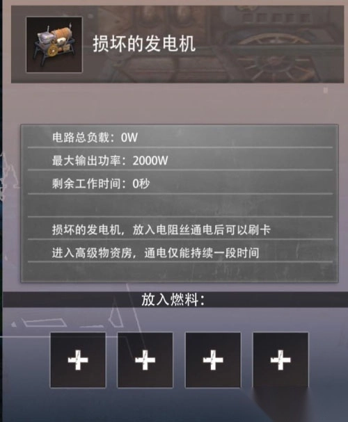 发电机:刷辐射芯片房的电源,需要放置电阻丝才能启动,消耗电阻丝获取电能,也可用于家中通电照明。