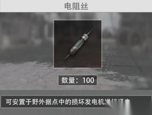 电阻丝:刷新地点包括物资箱、补给箱、工具箱、军火箱等,这些箱子都会刷新该物品。