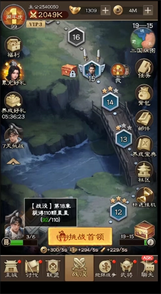 卡牌合成系统支持把三张星级相同的武将卡合成为更高阶的卡牌,合成时会随机出现属性强化和技能变异的情况。