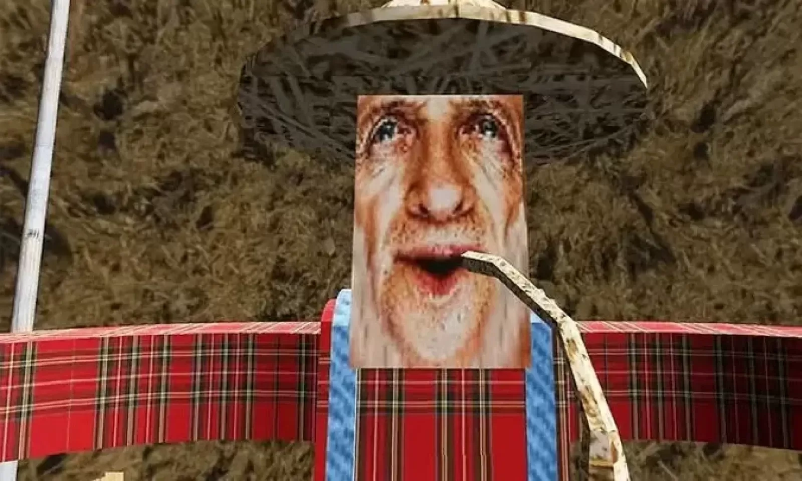 结局三:当你逃到屋外,此时的农场已经布满迷雾,这时农夫会开着拖拉机来抓你,而你要收集5个瓶子,完成后你就会被老太太绑在凳子上,最后四面八方挖掘机里腌萝卜会把你包围,然后你就会被燃成灰烬。