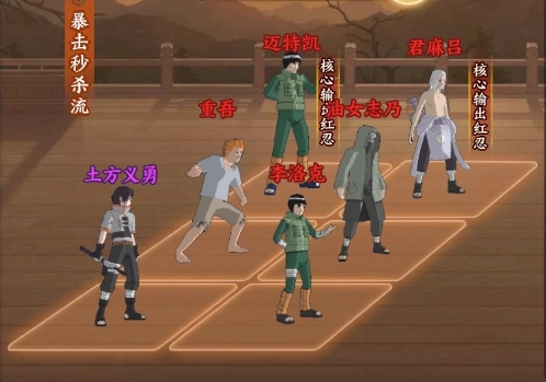 暴击秒杀流的一号位选择君麻吕是个不错的方案,他自身拥有较高的暴击率,还能为队友增加攻击属性。