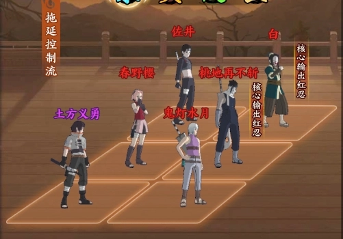 五号位:重吾承担补充输出的职责,在确保自身存活的前提下削减敌方查克拉,以此限制敌方的行动能力。