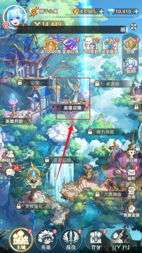 点击首页英雄召唤