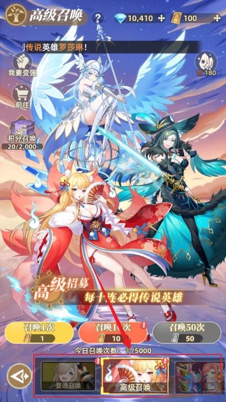 2、有普通召唤、高级召唤、友情召唤等选项,根据需求选择即可