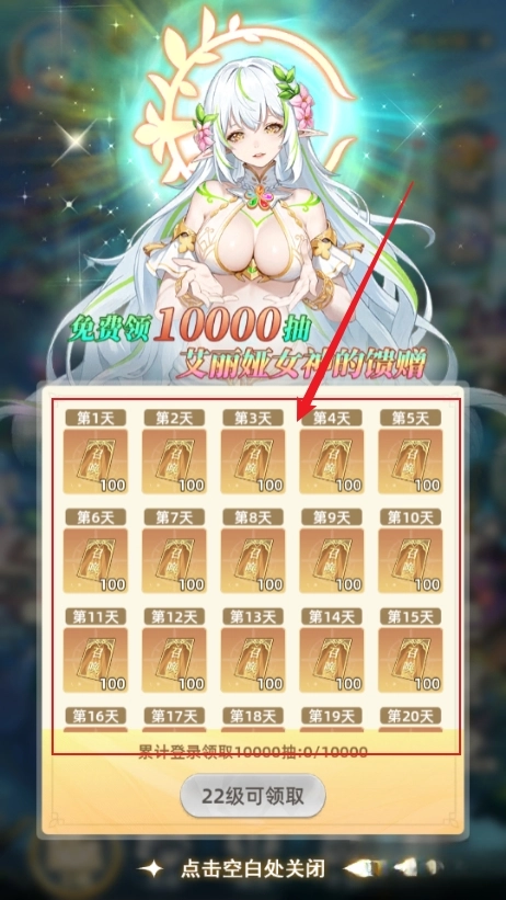 4、22级之后每天都可以领取100抽,持续100天