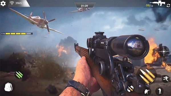 二战射击战场提供两种游戏模式供玩家挑选,玩家可凭借精准的射击技巧,持续消灭敌人的火力手。