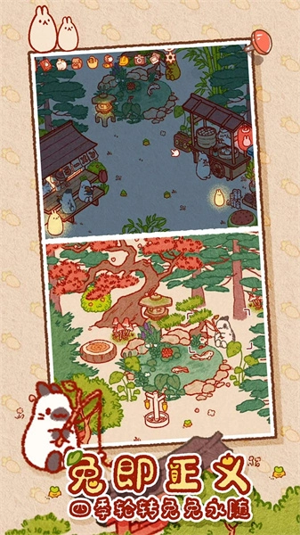 兔兔岛游戏采用手绘画面风格,能让各位小伙伴在游戏里体验轻松自在的兔子休闲玩法,再搭配上十分轻松的游戏模式,玩家便能感受到相当佛系的兔子经营玩法,从而体验到这款关于兔兔的单机经营游戏。