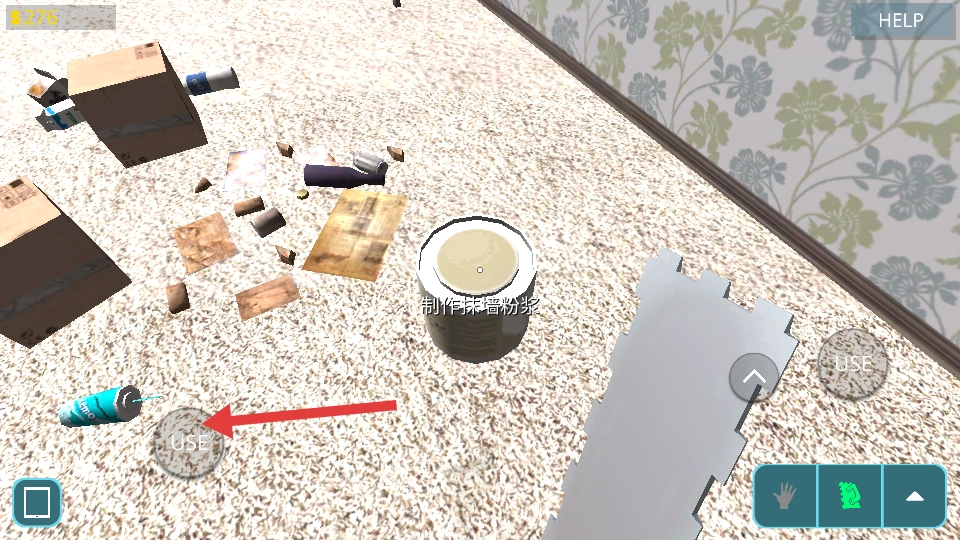 调配抹墙用的粉浆,接着点击【USE】按钮,就能完成房屋墙面的修补工作。