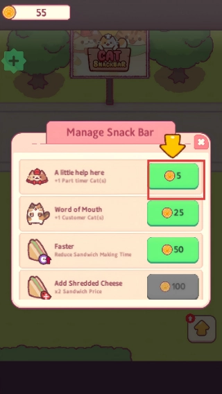 解锁新口味,扩充小吃店菜品,招揽更多猫咪顾客,增加店铺收益。