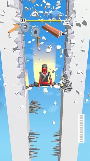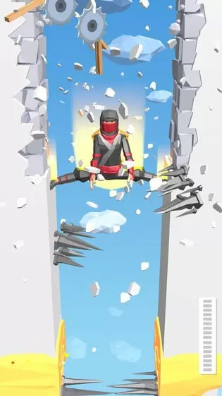 2. 当忍者抓住柱子或绳子时,可以向左或向右滑动屏幕来控制其左右移动。