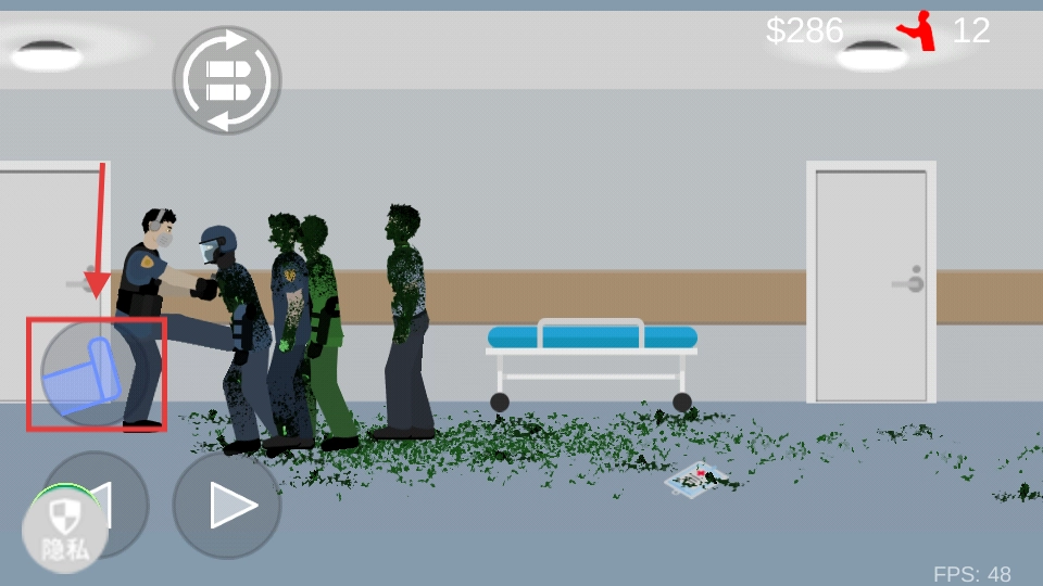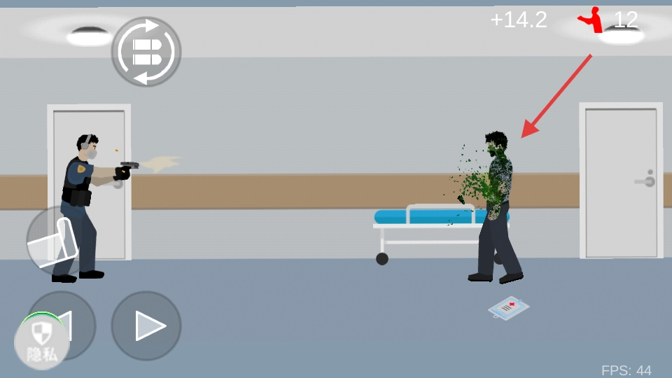 当遭遇僵尸群时,点击左侧的道具按钮即可踢开僵尸,借助这一辅助射击的方式,能够更高效地清除僵尸。
