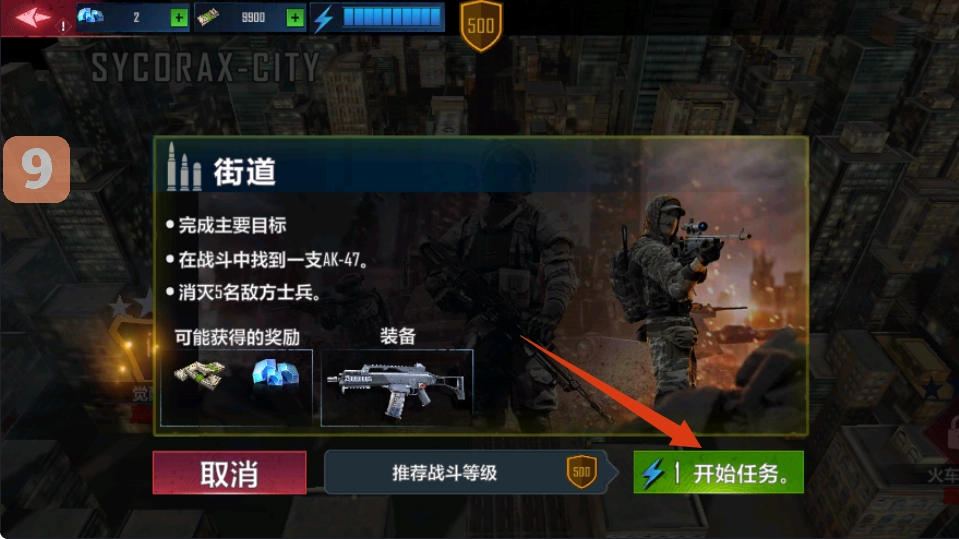 在任务选择界面,挑选“街道”这类任务,点击【开始任务】按钮,就能进入战斗场景。